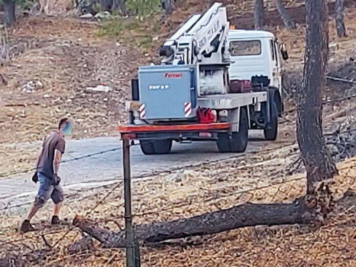 Σήμερα 6/8/2025 από νωρίς το πρωί γίνονται εργασίες κοπής και απομάκρυνσης των ξερών πεύκων που αποτελούσαν κίνδυνο για τους επισκέπτες του δάσους.