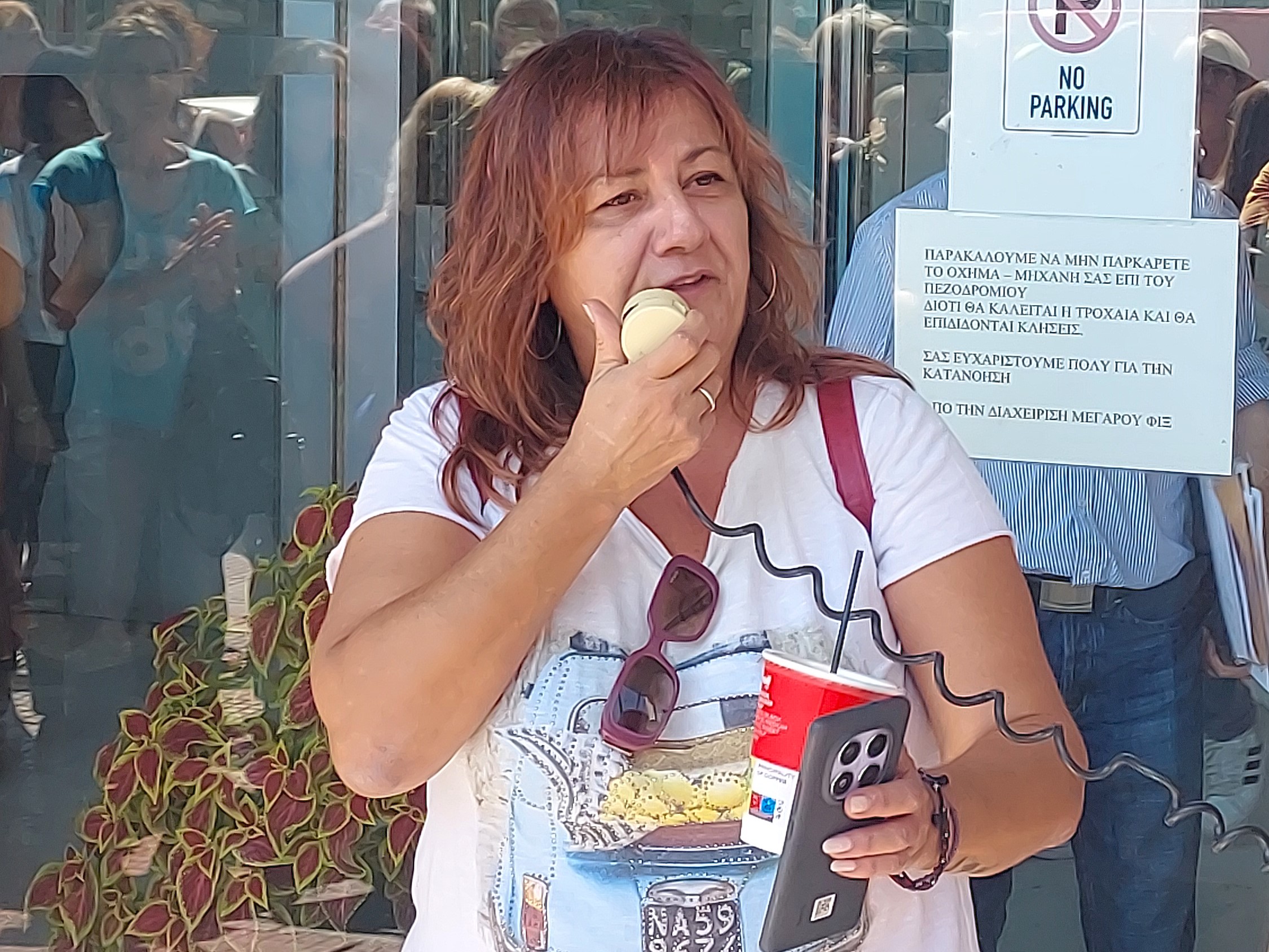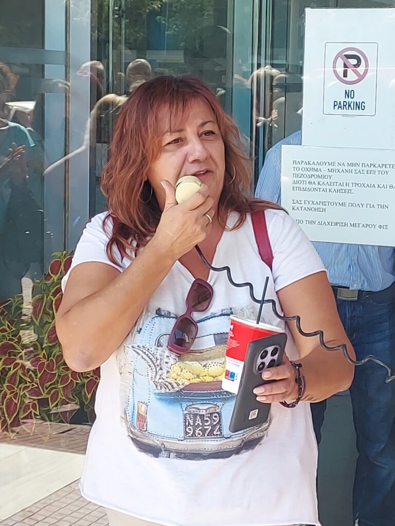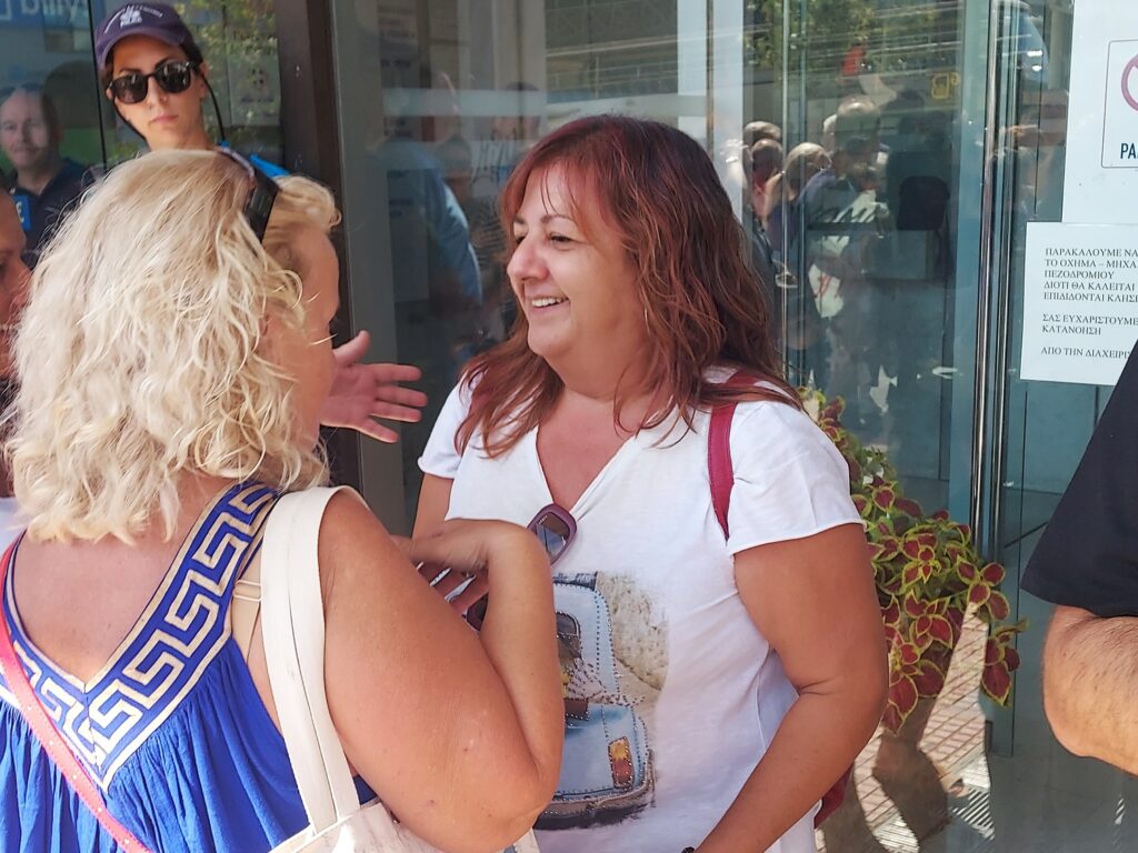 Οι συγκεντρωμένοι υποδέχθηκαν με χειροκροτήματα την κα Θ. Καραγιαννίδου, μόλις βγήκε από το κτίριο και έκανε σύντομη δήλωση εκφράζοντας την αισιοδοξία της για θετική απόφαση, που αναμένεται τις επόμενες μέρες και όλοι έσπευσαν να την εμψυχώσουν και να τη συγχαρούν.