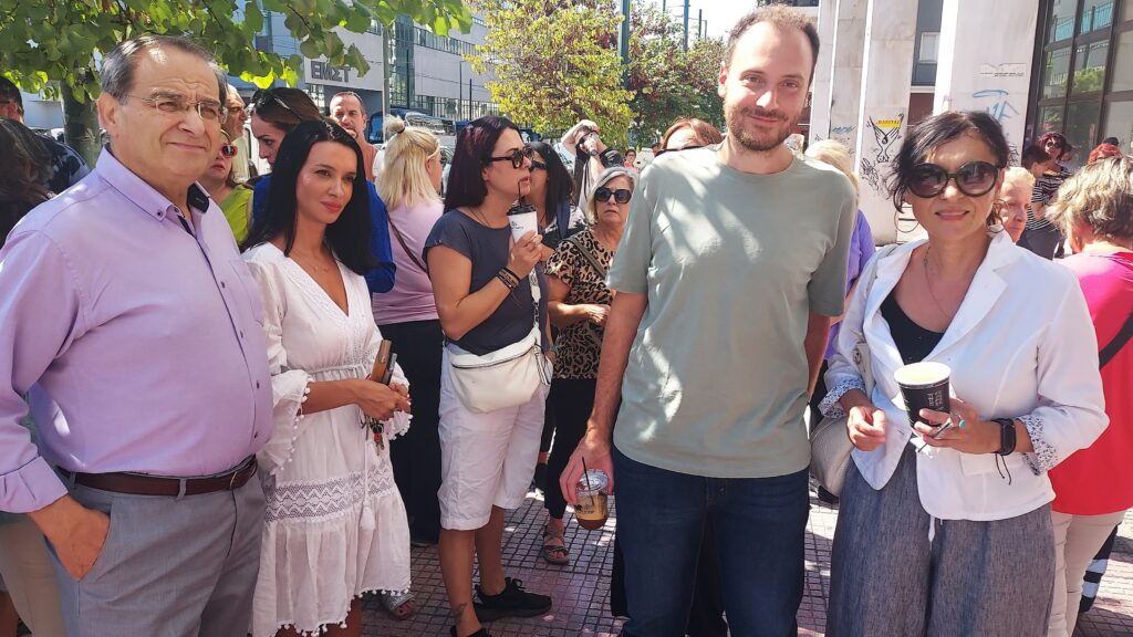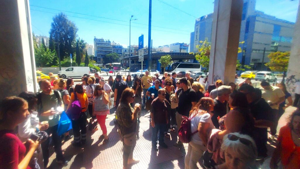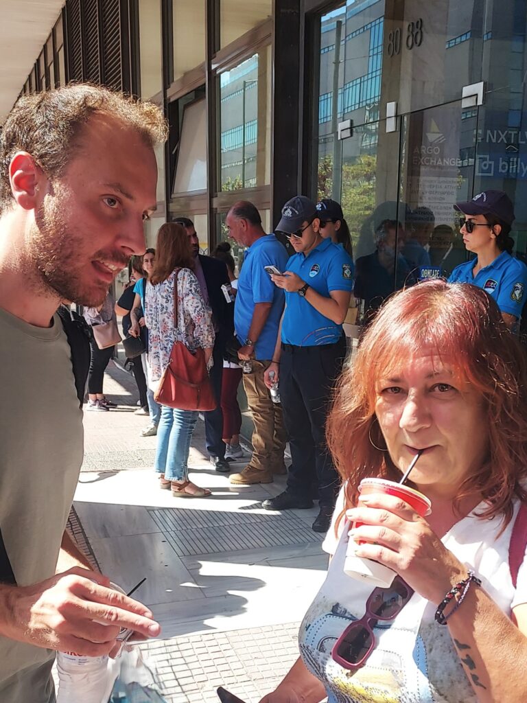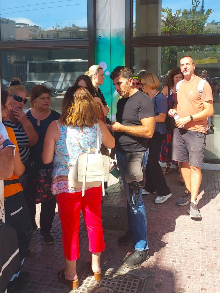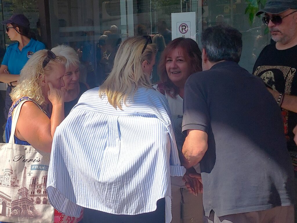 Οι συνάδελφοι της προέδρου στο Δήμο Ηλιούπολης, μέλη και στελέχη της ΠΟΕ-ΟΤΑ, επικεφαλής και εκπρόσωποι δημοτικών παρατάξεων και φορέων της Ηλιούπολης συγκεντρώθηκαν έξω από το κτίριο εκφράζοντας έμπρακτα την συμπαράστασή τους.