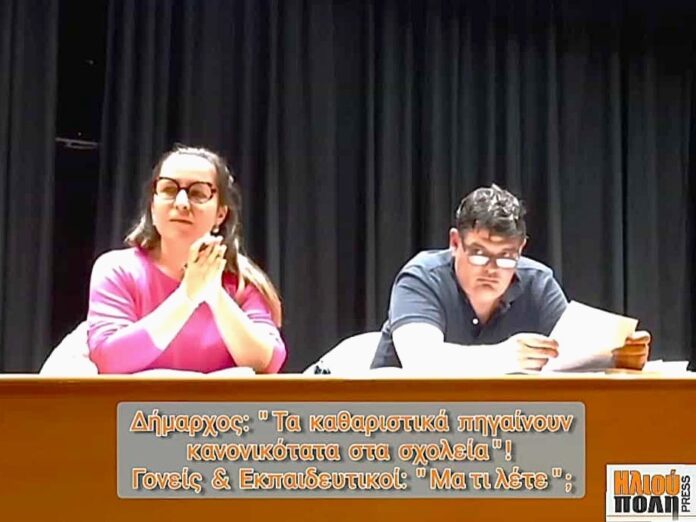 Παίρνοντας το λόγο από μόνος του, διακόπτοντας το προεδρείο και τους ομιλητές, προκάλεσε τις αντιδράσεις των αγανακτισμένων γονιών που πληρώνουν από την τσέπη τους για καθαριστικά, όταν τους είπε ότι: