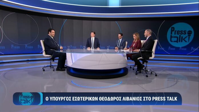 Στην εκπομπή “Press Talk” βρέθηκε καλεσμένος ο υπουργός Εσωτερικών, Θεόδωρος Λιβάνιος, μιλώντας με τον δημοσιογράφο Απόστολο Μαγγηριάδη για τις αλλαγές στην Τοπική Αυτοδιοίκηση, τον εκσυγχρονισμό του δημοσίου και τους στόχους της Κυβέρνησης.