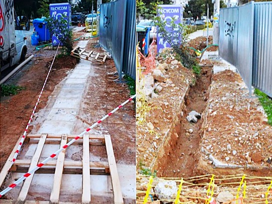 Την προηγούμενη Πέμπτη 4 Δεκεμβρίου αναδείξαμε τρεις χαρακτηριστικές περιπτώσεις, μία στην είσοδο της πόλης από τον Υμηττό, με το πεζοδρόμιο της Μ. Αντύπα να παραμένει σκαμμένο και αποκλεισμένο επί 3 εβδομάδες, δεύτερη στην οδό Δροσίνη δίπλα στο σχολικό συγκρότημα του Υμηττού και τρίτη στην οδό Ορφέως στο ρέμα της Πικροδάφνης.