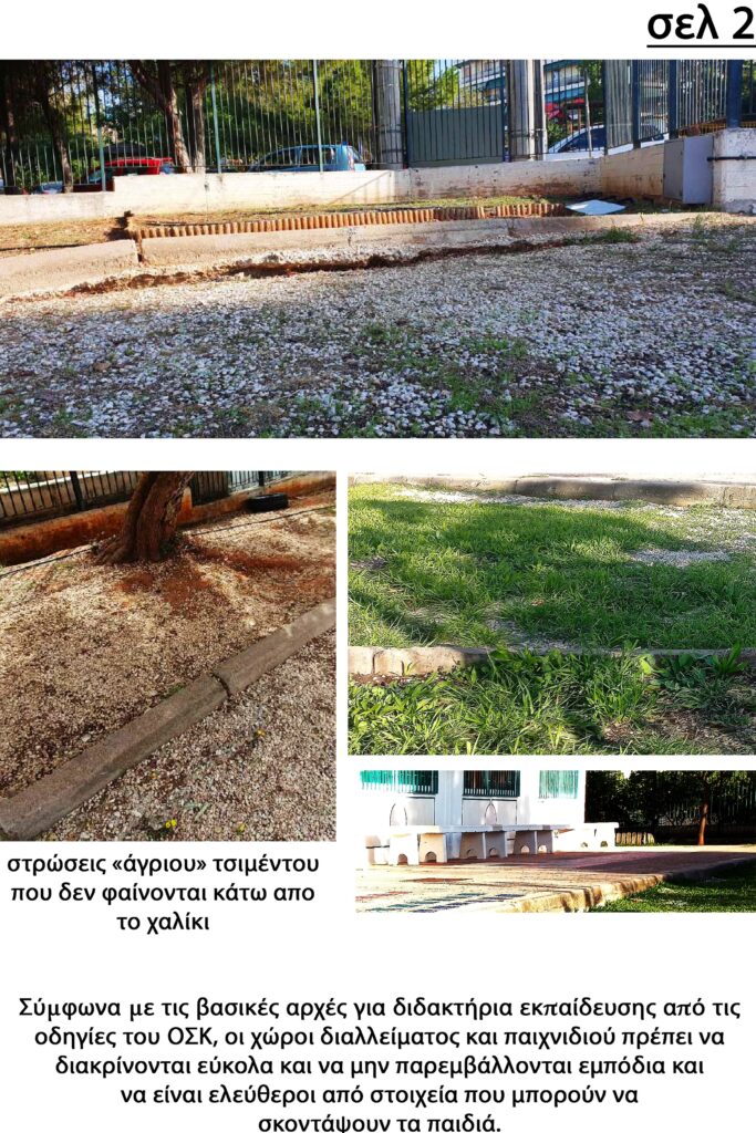 Στην καταγγελία του περιγράφει αναλυτικά της επεμβάσεις που πρέπει να γίνουν στον προαύλιο χώρο του σχολείου, ώστε στοιχειωδώς να είναι ασφαλή τα παιδιά και καταλήγει τονίζοντας με δικαιολογημένη αυστηρότητα ότι: “Δεν θα παίζει κανείς με τη ζωή του γιού μου και των άλλων παιδιών!” και καλεί τον Δήμο “να προβεί άμεσα σε όλες τις απαραίτητες επεμβάσεις“.