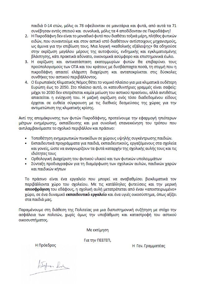 Παραμένουμε στη διάθεση της Πολιτείας για μια διεπιστημονική συζήτηση με στόχο την ασφάλεια των πολιτών, χωρίς όμως την υποβάθμιση και καταστροφή του αστικού οικοσυστήματος.