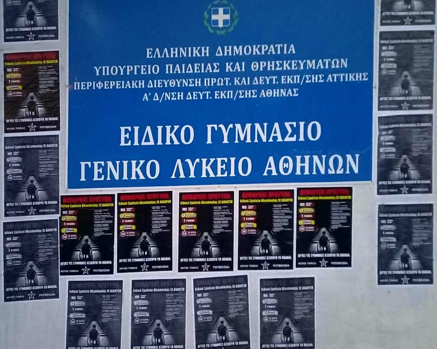 Ρουβίκωνας: Νέα “επίσκεψη” με αφίσες στο Ειδικό Σχολείο
