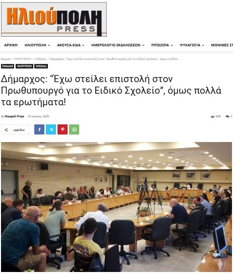 Στα επικοινωνιακά βιντεάκια του Δημάρχου για τα όσα “έχει κάνει για το Ειδικό Σχολείο“, εκτός του ότι συχνά απαριθμεί τις επισκέψεις του στα Υπουργεία, Παιδείας, Εσωτερικών, Υποδομών ή στην ΚΤΥΠ, αναφέρει ακόμη και την …γνωστή επιστολή του προς στον Πρωθυπουργό, από το 2024.