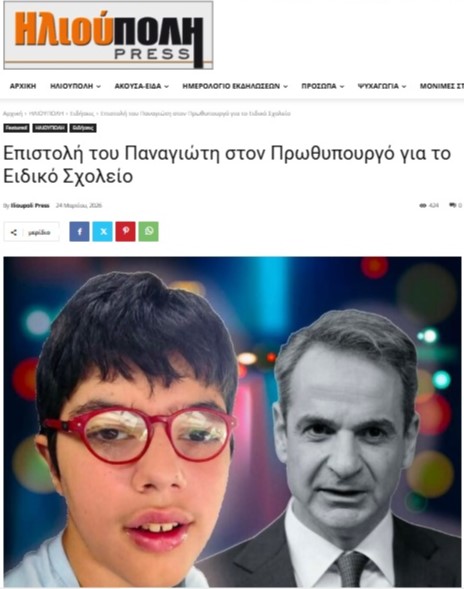 📌 Μόλις προχθές, ο Παναγιώτης, ο γιός της συμπολίτισσας Γραμματέως του Συλλόγου Γονέων του Ειδικού Σχολείου, έστειλε μια προσωπική, συναισθηματική επιστολή στον Πρωθυπουργό.