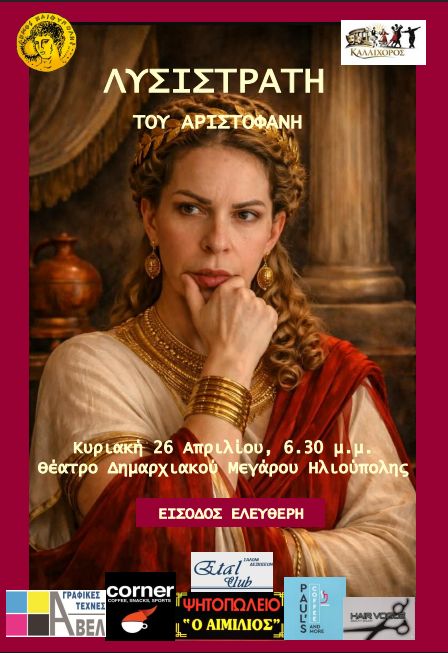 Ο Πολιτιστικός Σύλλογος “Καλλίχορος” ανεβάζει τη “Λυσιστράτη” του Αριστοφάνη την Κυριακή 26 Απριλίου στις 18:30 στο Δημοτικό Θέατρο Ηλιούπολης “Μίκης Θεοδωράκης”, με ένα διαχρονικό μήνυμα πιο επίκαιρο από ποτέ: